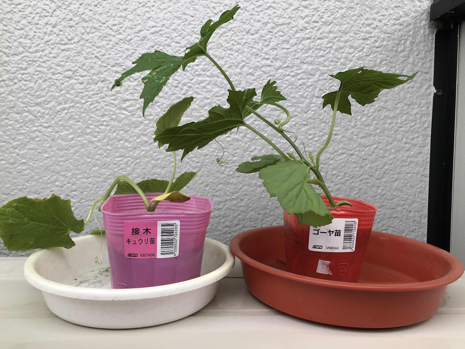 見たまま、きゅうりとゴーヤである。